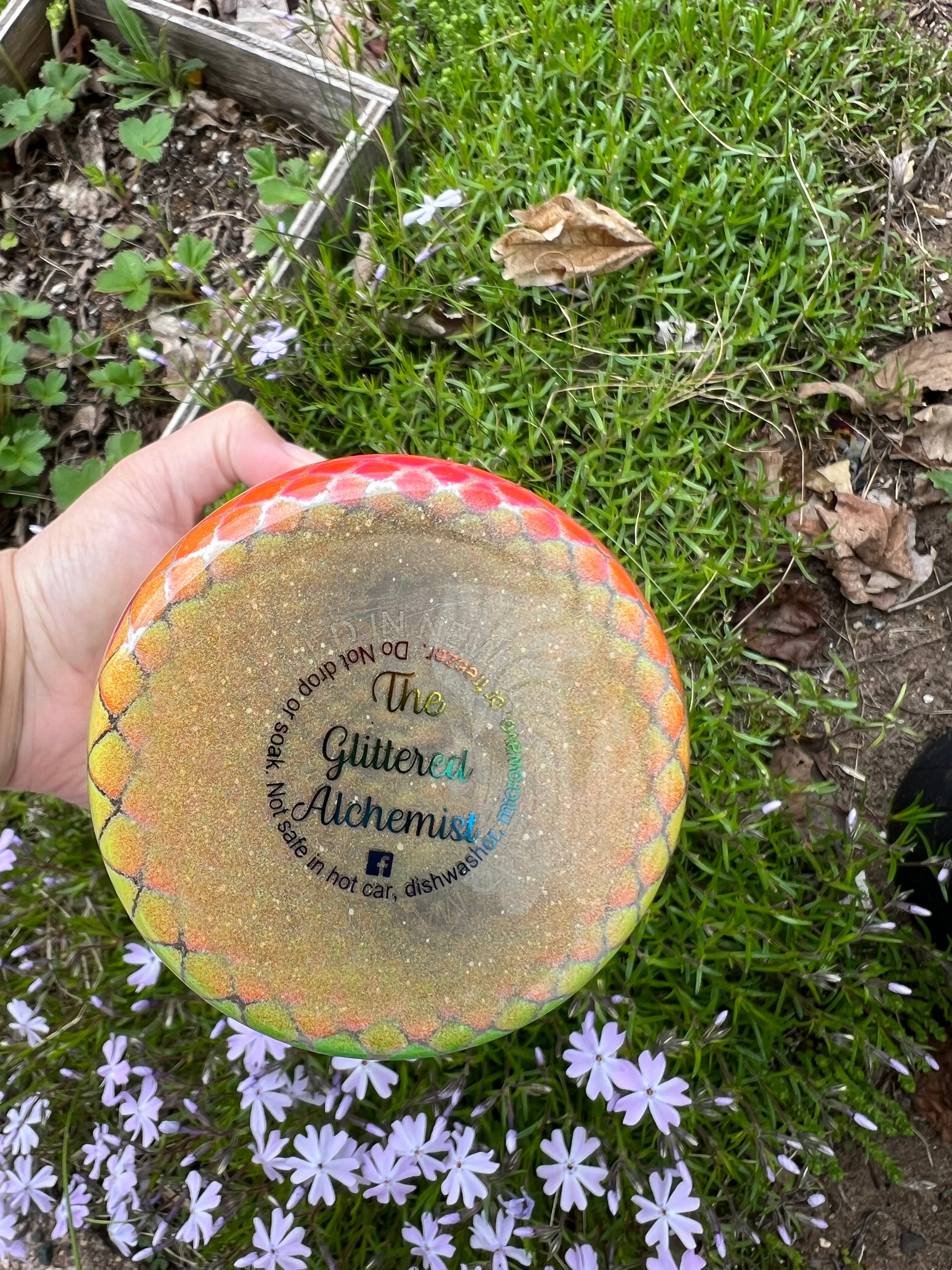 This 20oz stainless steel tumbler has a double wall design and resembles a neon fishing lure. It is a great option for fishing enthusiasts and makes for a unique Father's Day gift. The tumbler is sealed with FDA compliant epoxy and may have slight imperfections due to being handmade.