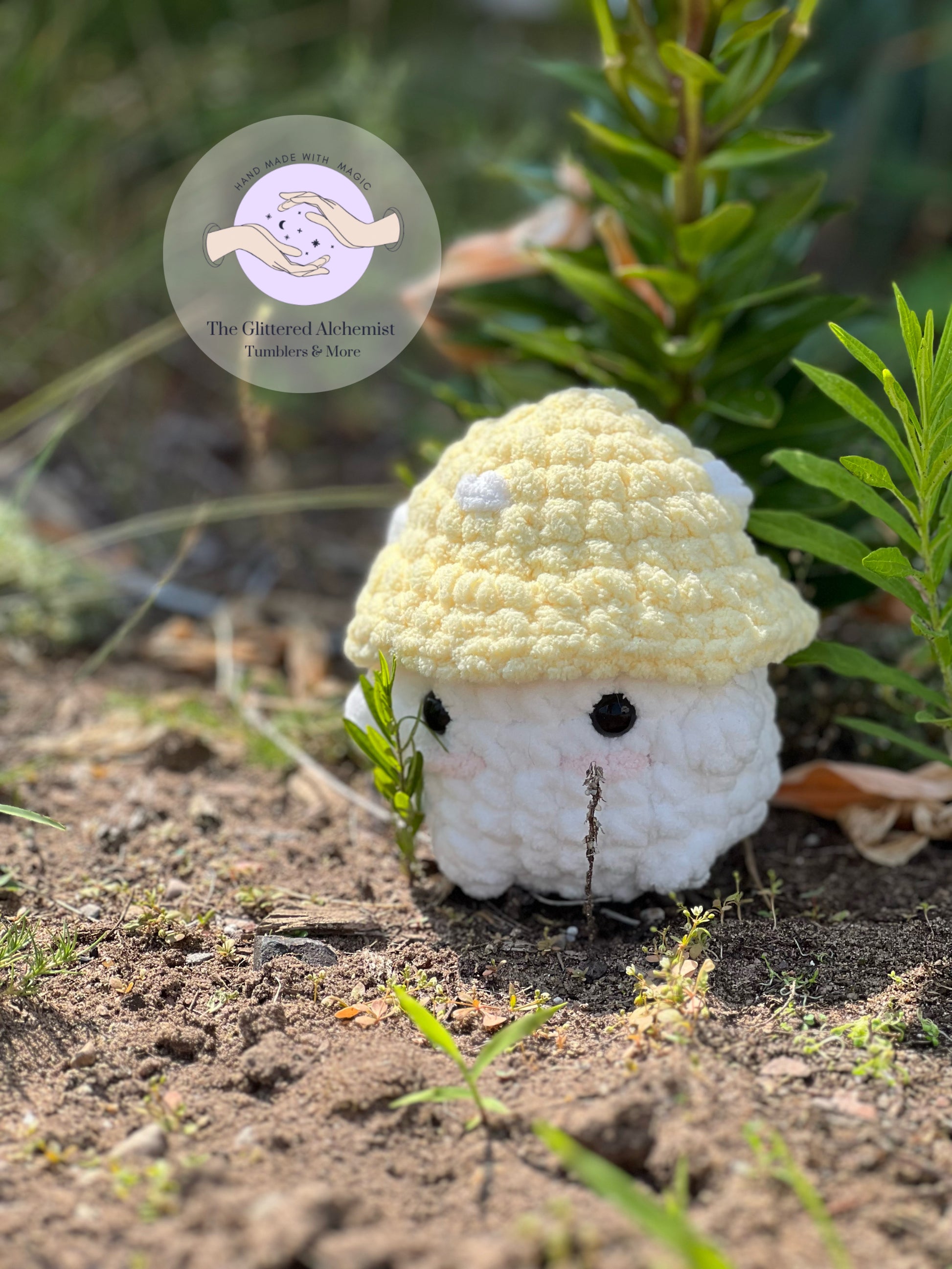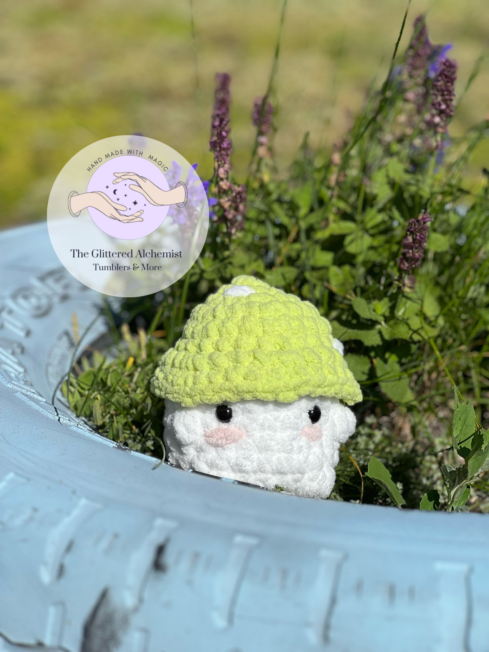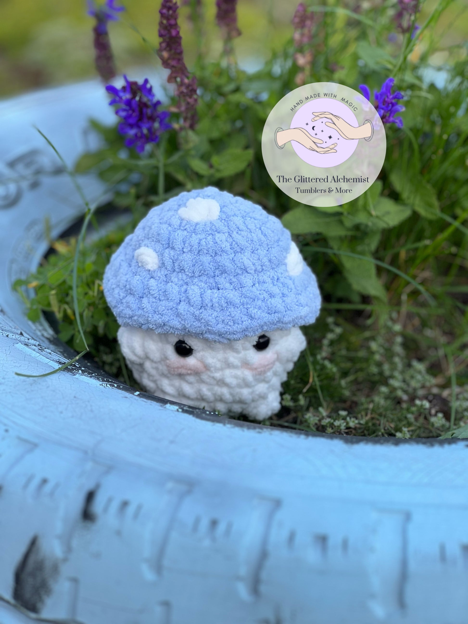 Looking for a fun and fuzzy companion? Check out Mushie Boi, handcrafted by The Glittered Alchemist using Bernat Blanket yarn. This adorably soft creation comes with small safety eyes - just be sure to keep it away from children under 5 years old (those eyes can be a choking hazard!).
