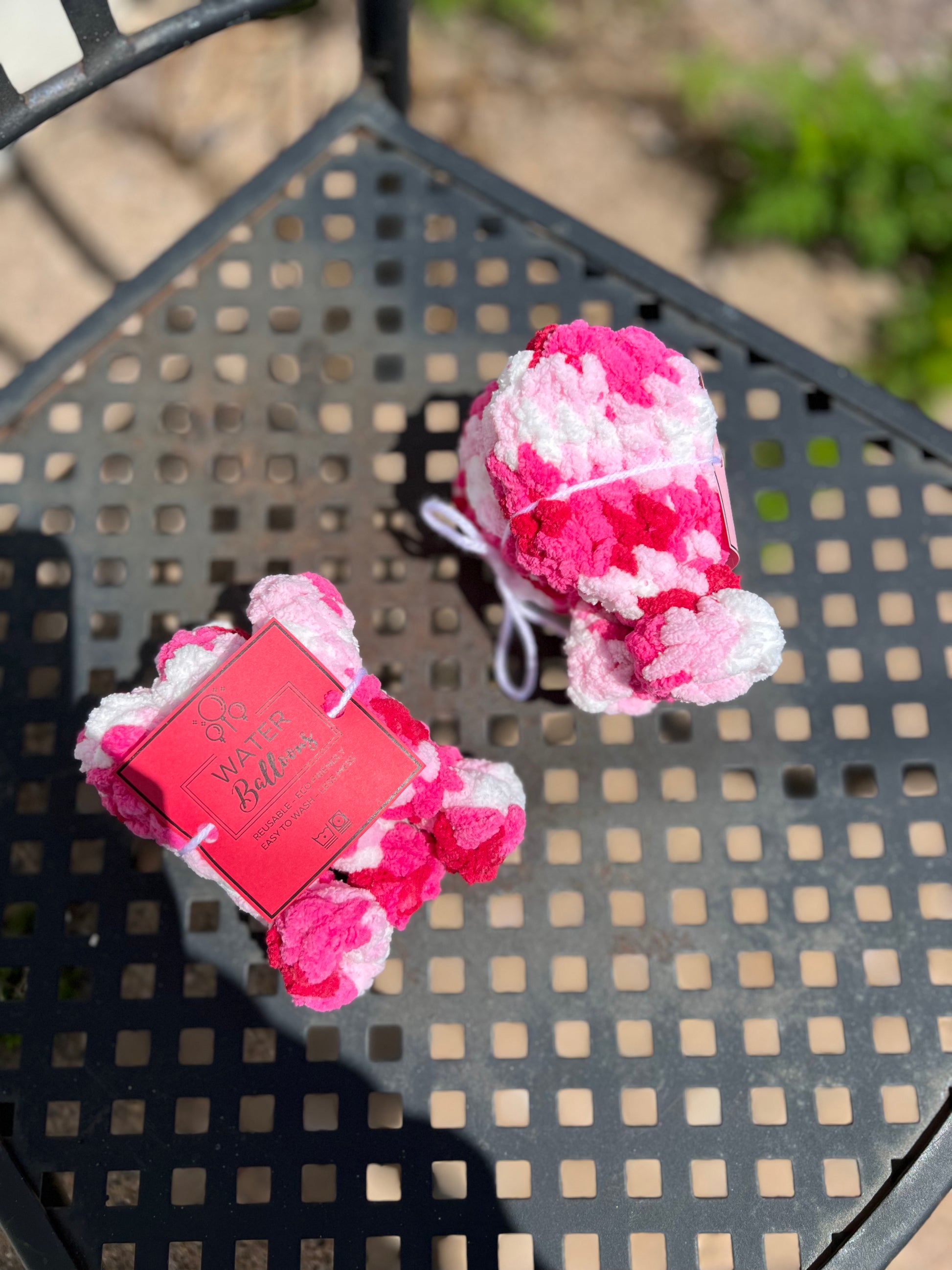 These Reusable Crochet Water Balloons are crafted with top-quality Bernat Blanket Yarn. With no waste to dispose of, all you need to do is soak them in a bucket of water before throwing (just avoid aiming for someone's face)! To clean, simply ring them out and leave them to dry or toss them in the washing machine.