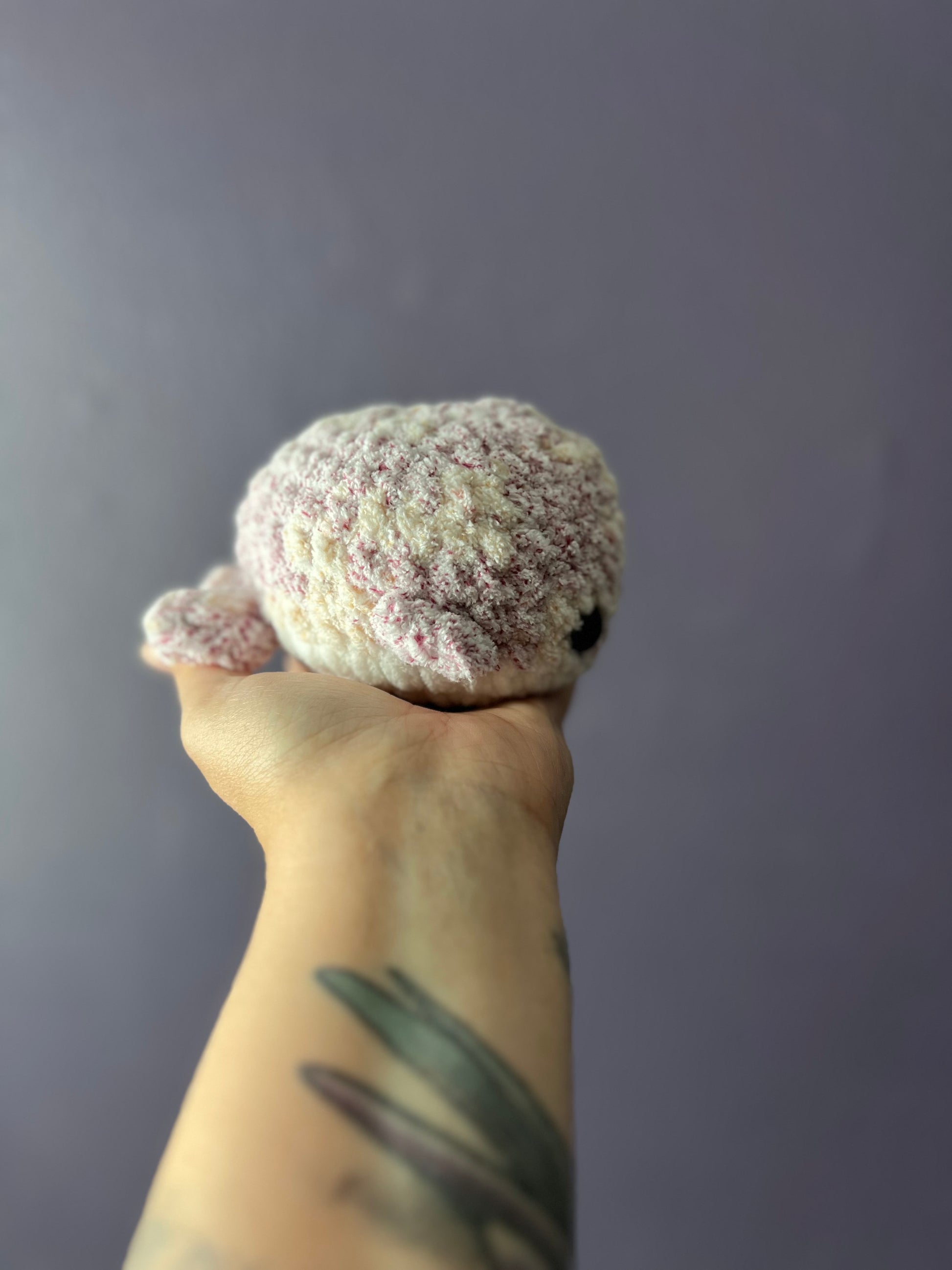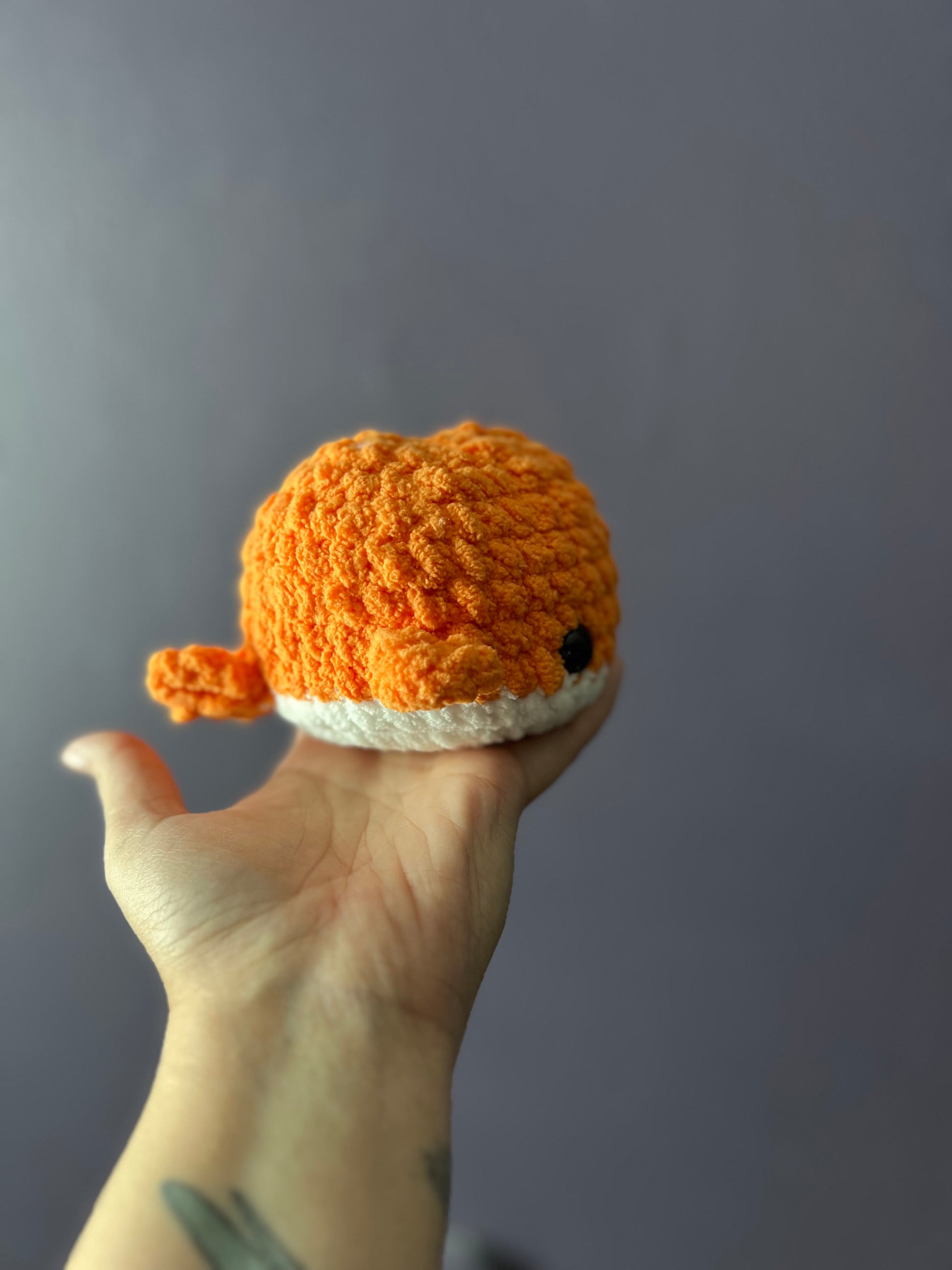 Unleash the joy of squeezing with Waverly the Whale, made with Bernat Blanket Yarn. This unique crochet creation contains both stuffing and a secret stress ball, which may peek out of the blow hole when gently compressed. Just remember, don't get too carried away with the squeezing!